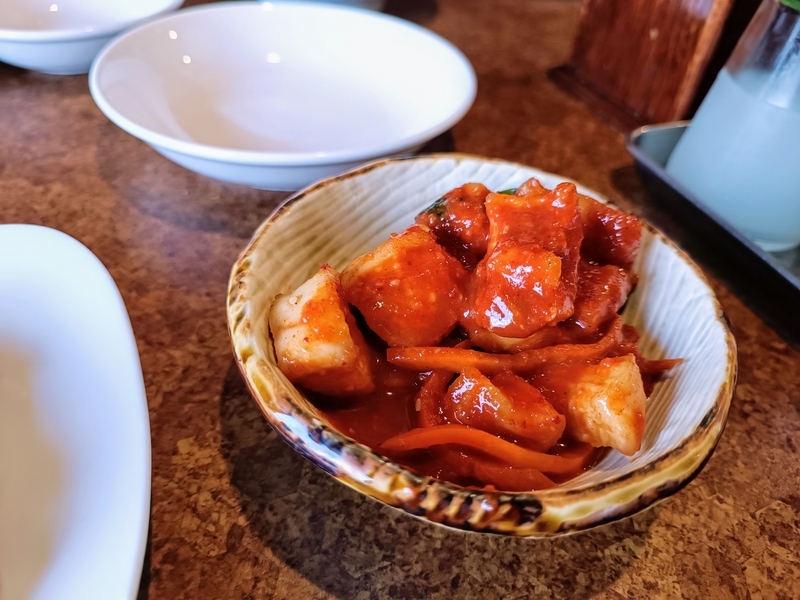 正体知ってます?タラの内臓を唐辛子やニンニク、コチュジャンやごま油などの調味料と一緒に漬け込んだ塩辛のことで、「 魚のキムチ」とも呼ばれているそうです。 コリコリ食感がやみつきジャ。